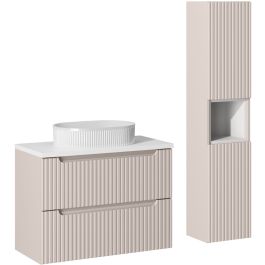Das 80 cm breite Möbelset mit Waschtischplatte, Aufsatzwaschbecken Beyond und Hochschrank ist die perfekte Wahl für alle, die Komfort, Funktionalität und raffiniertes Design schätzen. Dank der präzisen Verarbeitung und sorgfältigen Ausführung ist das Set eine ideale Kombination aus Praktikabilität und Ästhetik, die jeden Moment im Badezimmer zu etwas Besonderem macht.