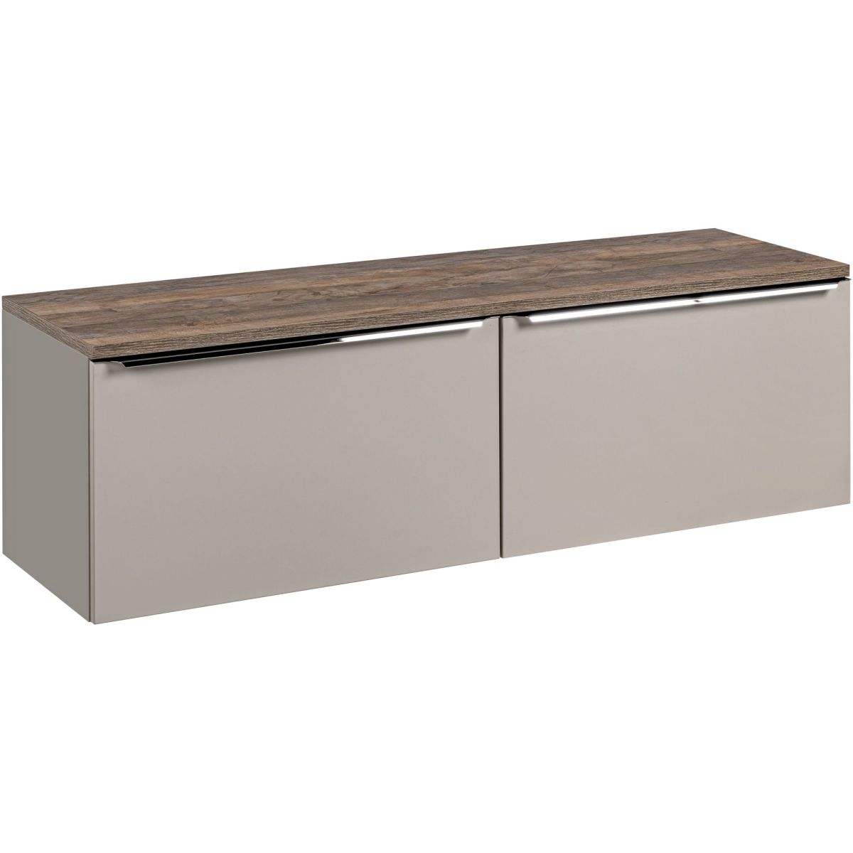 Santa Fe Taupe ist eine Kollektion, die mit Liebe zum Detail entworfen wurde. Front und Korpus in Silikonfarbe – optional mit Arbeitsplatte in Vintage-Eiche, ergänzt durch silberne Chromgriffe. Diese originelle Kombination verleiht jedem Badezimmer Charakter. Santa Fe sind minimalistische Möbel, die zu jedem Badezimmer passen und ein frisches, modernes Design haben. Santa Fe Taupe ist eine einfache, aber originelle Konstruktion, die jedem Interieur Wärme verleiht. Die Badezimmermöbel aus der Kollektion Santa Fe Taupe sind komfortabel und funktional. Die Kollektion umfasst Waschbeckenschränke, einen hohen Schrank, Spiegelschränke sowie Unter- und Oberschränke. Um den Erwartungen unserer Kunden gerecht zu werden, ergänzen wir diese Kollektion um einen Schubladenorganizer. Dieser ist nicht nur funktional, weil er den Siphonausschnitt perfekt verdeckt, sondern bietet auch zusätzlichen Stauraum in der Schublade.