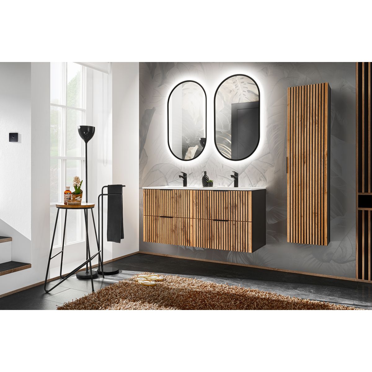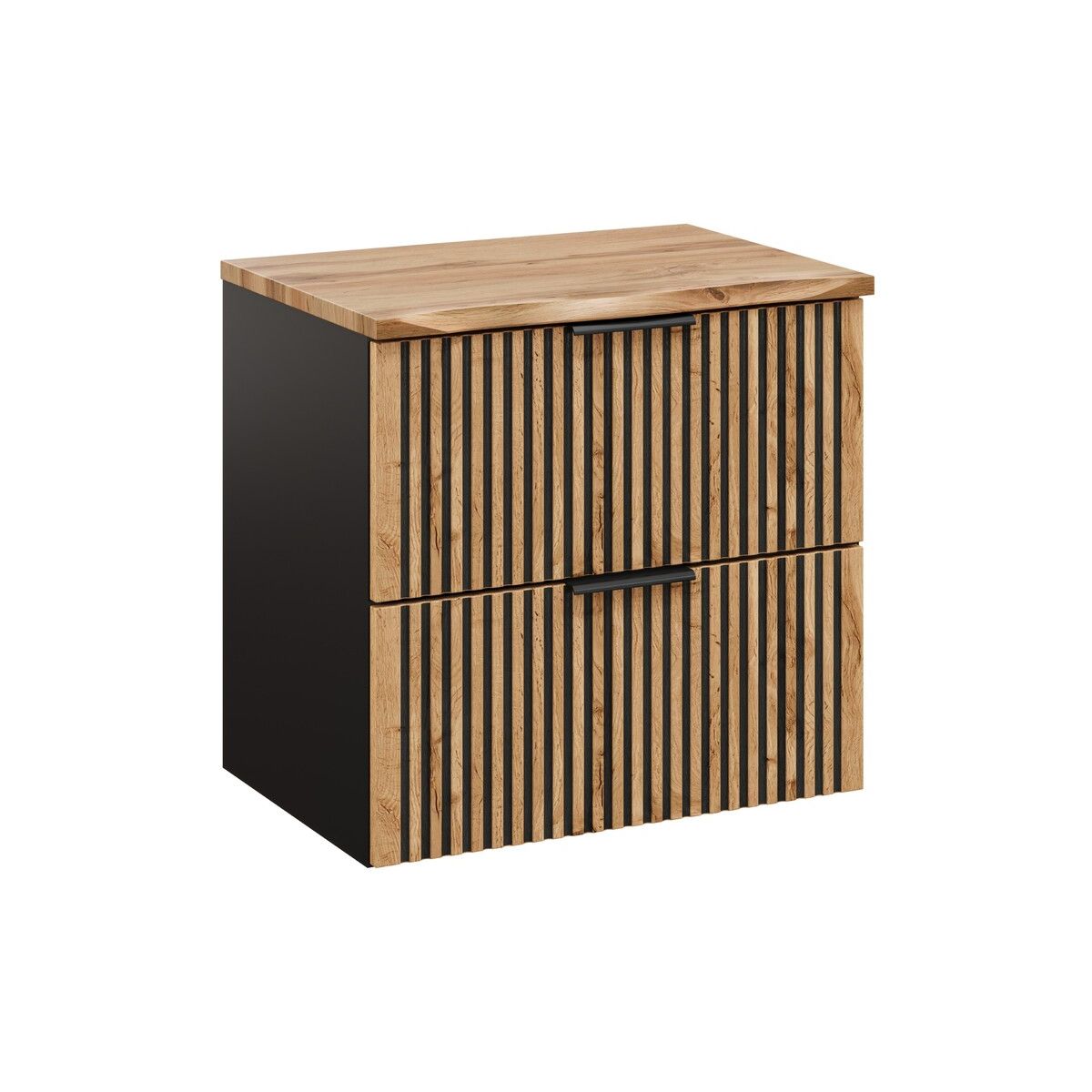 Diese Kollektion besticht durch ihre Farbe und ihren Stil. Die ausdrucksstarken Maserungen der Wotan-Eiche in Kombination mit schwarzen Rillen sind eine Neuheit auf dem Möbelmarkt, die sich immer größerer Beliebtheit erfreut. Die Kollektion umfasst Waschbeckenschränke in verschiedenen Größen, einen hohen Schrank, Würfel und einen Unterschrank, wodurch die Kollektion modular ist und die Möglichkeit bietet, Sets für Badezimmer jeder Größe zusammenzustellen. Die Xilo-Kollektion steht nicht nur für Qualität und modernes Design, sondern auch für Komfort und Funktionalität. Für die Waschbeckenschränke können sowohl Möbelwaschbecken verwendet als auch mit Arbeitsplatten kombiniert und ein Waschbecken aus unserem umfangreichen Angebot ausgewählt werden.