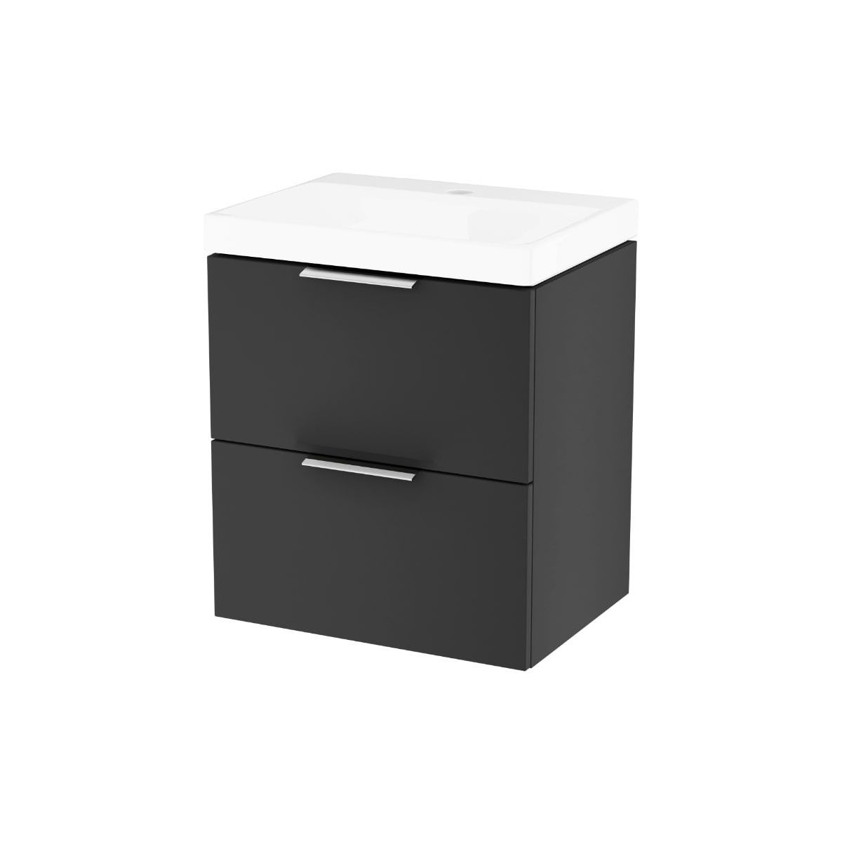 Die neue Möbelserie Blanko ist die ideale Wahl für alle, die ein kleines Badezimmer mit funktionalen und kompakten Möbeln ausstatten möchten. Waschbeckenunterschrank 49 cm, schwarz matt. Mit einer Tiefe von nur 37 cm passt er selbst in das kleinste Badezimmer und ist dank des speziell geformten Waschbeckens dennoch komfortabel zu benutzen. Die Fronten des Schranks sind mit einer hochwertigen Lackierung versehen und schützen das Möbelstück in einem anspruchsvollen Raum wie dem Badezimmer. Die angebotenen Farben werden derzeit sehr häufig in der Badgestaltung verwendet, da sie sich gut mit anderen Farben im Raum kombinieren lassen. Der Schrank ist mit Hettich-Führungen (¾ ausziehbar) mit Softclose-Funktion ausgestattet, und die obere Schublade verfügt über einen eingebauten Holzorganizer. Im Lieferumfang sind 2 Aluminiumgriffe in Chrom enthalten.