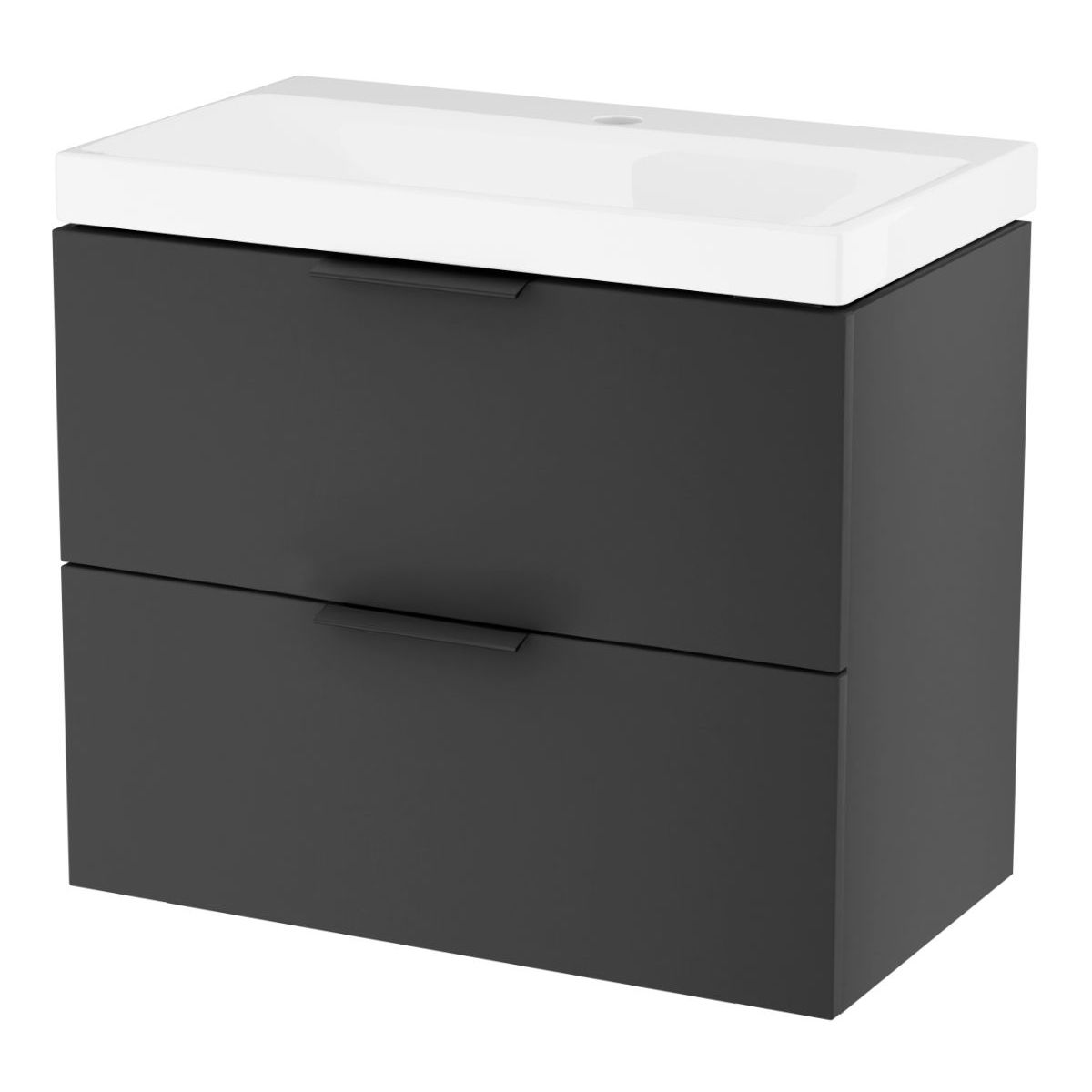 Die neue Möbelserie Blanko ist die ideale Wahl für alle, die ein kleines Badezimmer mit funktionalen und kompakten Möbeln ausstatten möchten. Waschbeckenunterschrank 64 cm, schwarz matt. Mit einer Tiefe von nur 37 cm passt er selbst in das kleinste Badezimmer und ist dank des speziell geformten Waschbeckens dennoch komfortabel zu benutzen. Die Fronten des Schranks sind mit einer hochwertigen Lackierung versehen und schützen das Möbelstück in einem anspruchsvollen Raum wie dem Badezimmer. Die angebotenen Farben werden derzeit sehr häufig in der Badgestaltung verwendet, da sie sich gut mit anderen Farben im Raum kombinieren lassen. Der Schrank ist mit Hettich-Führungen (¾-Auszug) mit Soft-Close-Funktion ausgestattet, und die obere Schublade verfügt über einen eingebauten Holzorganizer. Im Lieferumfang enthalten sind 2 Aluminiumgriffe in Mattschwarz.
