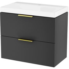 Die neue Möbelserie Blanko ist die ideale Wahl für alle, die ein kleines Badezimmer mit funktionalen und kompakten Möbeln ausstatten möchten. Waschbeckenunterschrank 64 cm, schwarz matt. Mit einer Tiefe von nur 37 cm passt er selbst in das kleinste Badezimmer und ist dank des speziell geformten Waschbeckens dennoch komfortabel zu benutzen. Die Fronten des Schranks sind mit einer hochwertigen Lackierung versehen und schützen das Möbelstück in einem anspruchsvollen Raum wie dem Badezimmer. Die angebotenen Farben werden derzeit sehr häufig in der Badgestaltung verwendet, da sie sich gut mit anderen Farben im Raum kombinieren lassen. Der Schrank ist mit Hettich-Führungen (¾-Auszug) mit Soft-Close-Funktion ausgestattet, und die obere Schublade verfügt über einen eingebauten Holzorganizer. Im Lieferumfang enthalten sind 2 Aluminiumgriffe in Goldglanz.