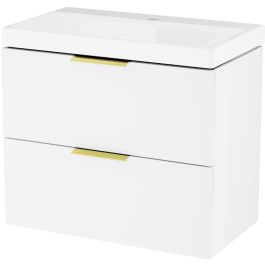 Die neue Möbelserie Blanko ist die ideale Wahl für alle, die ein kleines Badezimmer mit funktionalen und kompakten Möbeln ausstatten möchten. Waschbeckenunterschrank 64 cm, weiß glänzend. Mit einer Tiefe von nur 37 cm passt er selbst in das kleinste Badezimmer und ist dank des speziell geformten Waschbeckens dennoch komfortabel zu benutzen. Die Fronten des Schranks sind mit einer hochwertigen Technologie lackiert und schützen das Möbelstück in einem anspruchsvollen Raum wie dem Badezimmer. Die angebotenen Farben werden derzeit sehr häufig in der Badgestaltung verwendet, da sie sich gut mit anderen Farben im Raum kombinieren lassen. Der Schrank ist mit Hettich-Führungen (¾-Auszug) mit Soft-Close-Funktion ausgestattet, und die obere Schublade verfügt über einen eingebauten Holzorganizer. Im Lieferumfang enthalten sind 2 Aluminiumgriffe in Goldglanz.