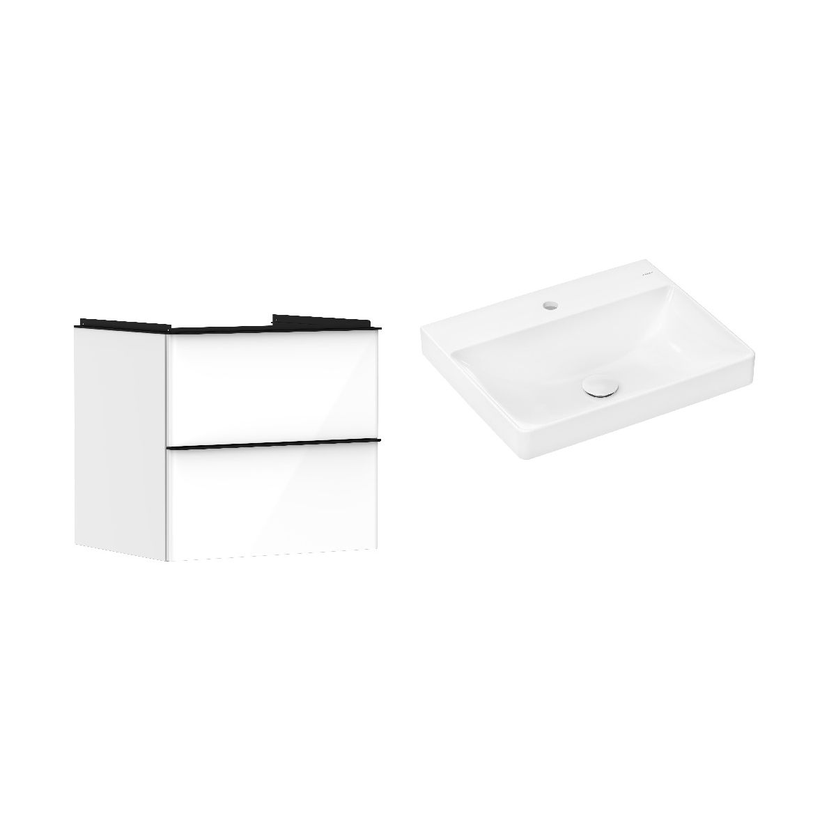1. Hansgrohe Xelu Q Waschtischunterschrank 58 cm, hängend, hochglanzweiß/matt schwarz 54023670