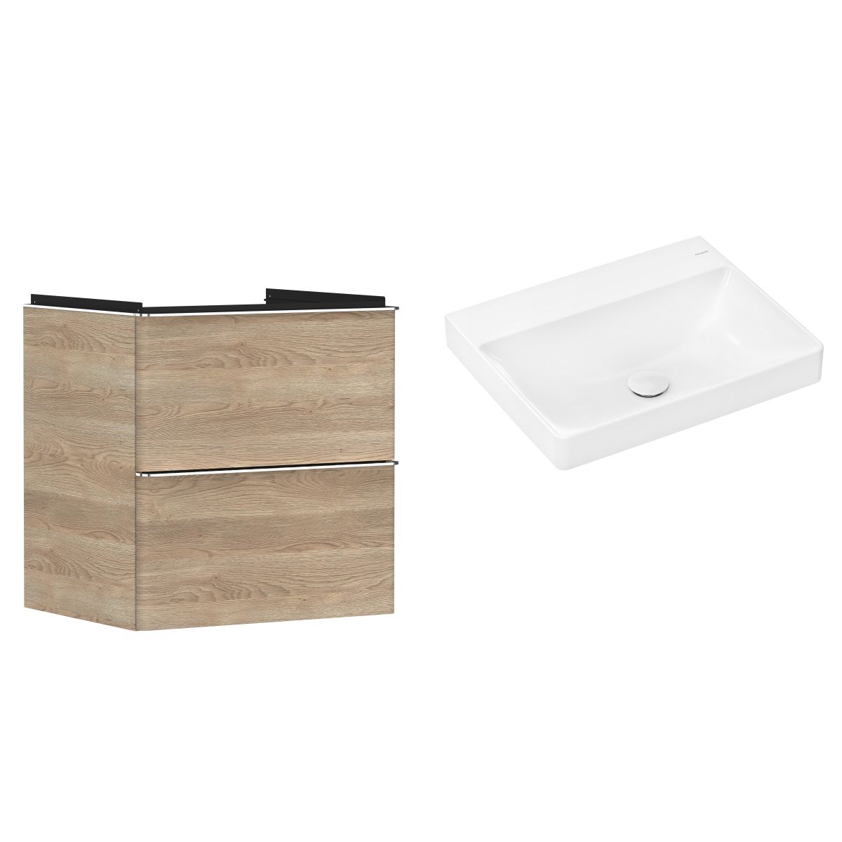 1. Hansgrohe Xelu Q Waschtischunterschrank 58 cm, hängend, Eiche natur/Chrom 54025000