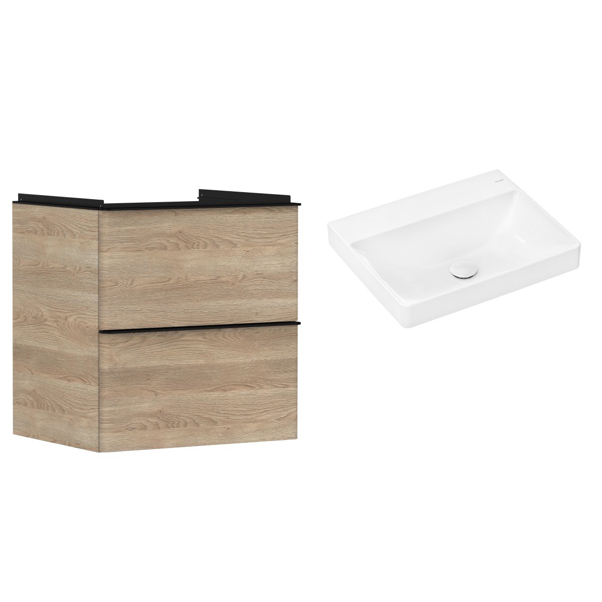 1. Hansgrohe Xelu Q Waschtischunterschrank 58 cm, hängend, Eiche natur/schwarz matt 54025670