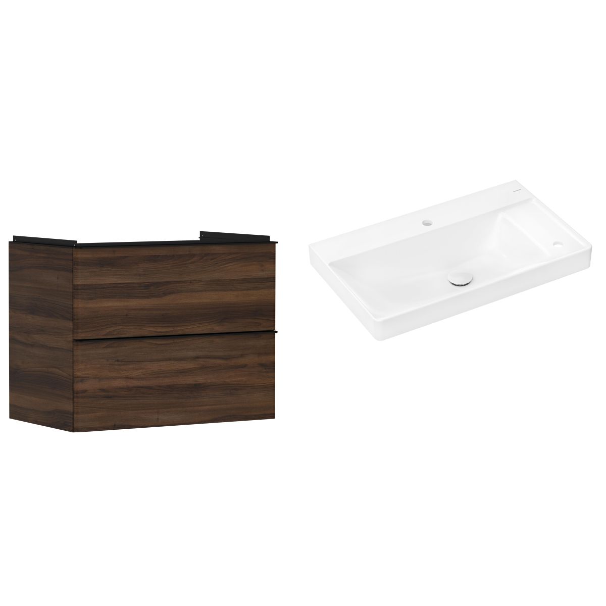 1. Hansgrohe Xelu Q Waschtischunterschrank 78 cm, hängend, dunkles Nussbaum/Mattschwarz 54030670