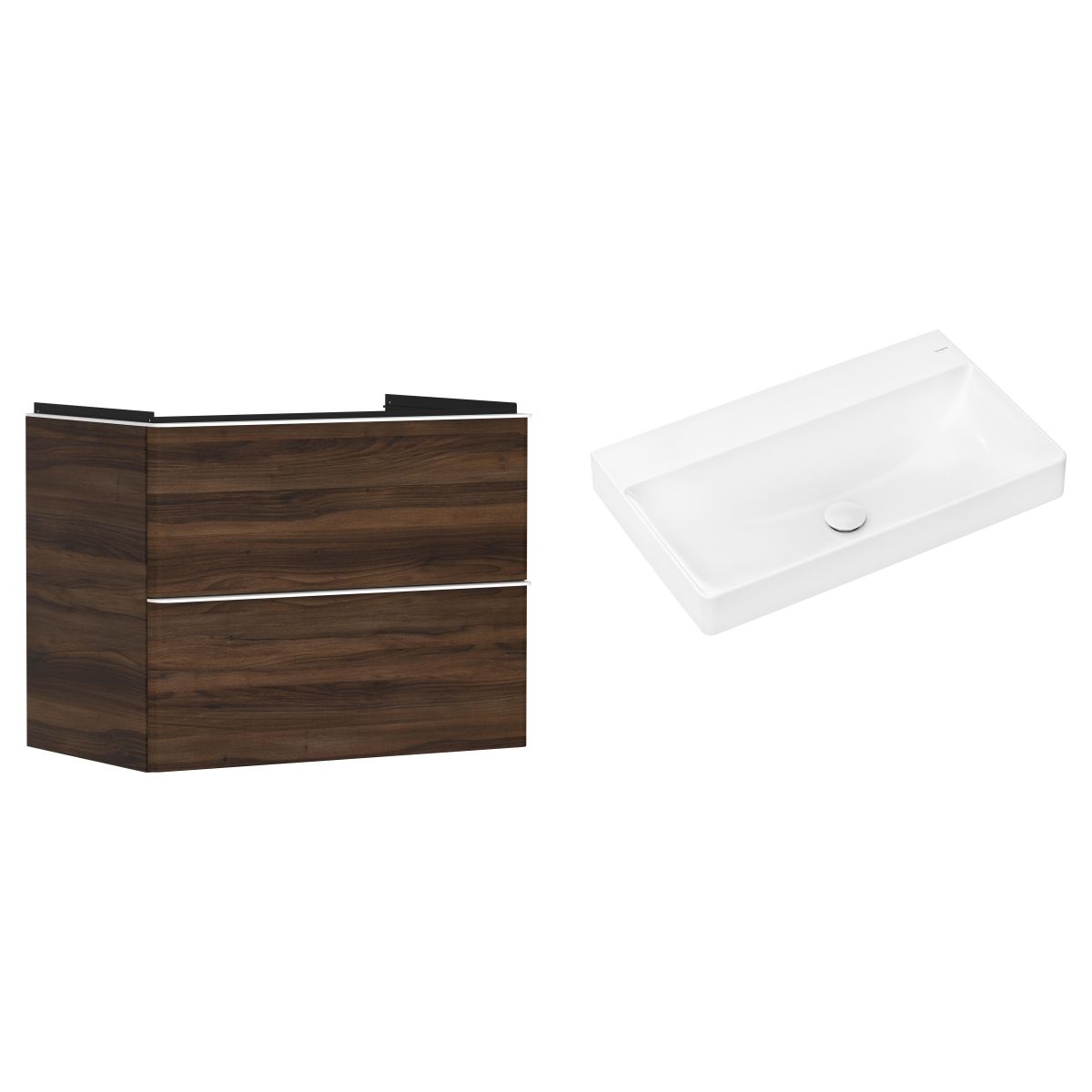 1. Hansgrohe Xelu Q Waschtischunterschrank 78 cm, hängend, dunkles Nussbaum/mattweiß 54030700