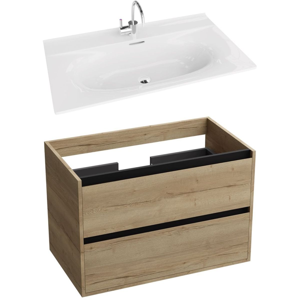 1. LaVita Minnesota 80 cm Waschtischunterschrank, hängend, Eiche/Schwarz