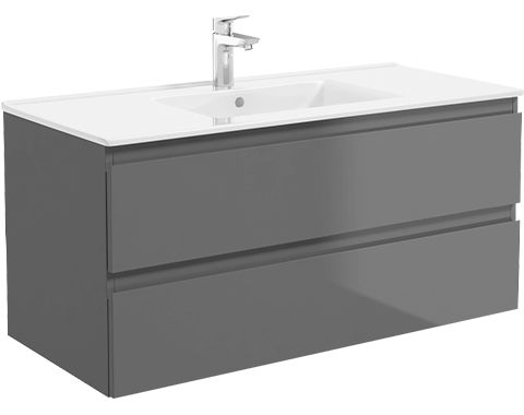 ‑ Breite des Beckens 101 cm ‑ Tiefe des Waschbeckens 46 cm ‑ Höhe des Waschbeckens 17 cm ‑ Loch für Armatur Ø35 mm ‑ Schrankbreite 99,6 cm ‑ Schranktiefe 45,65 cm ‑ Höhe des Schranks 47 cm Farbe des Schranks entspricht RAL7043
