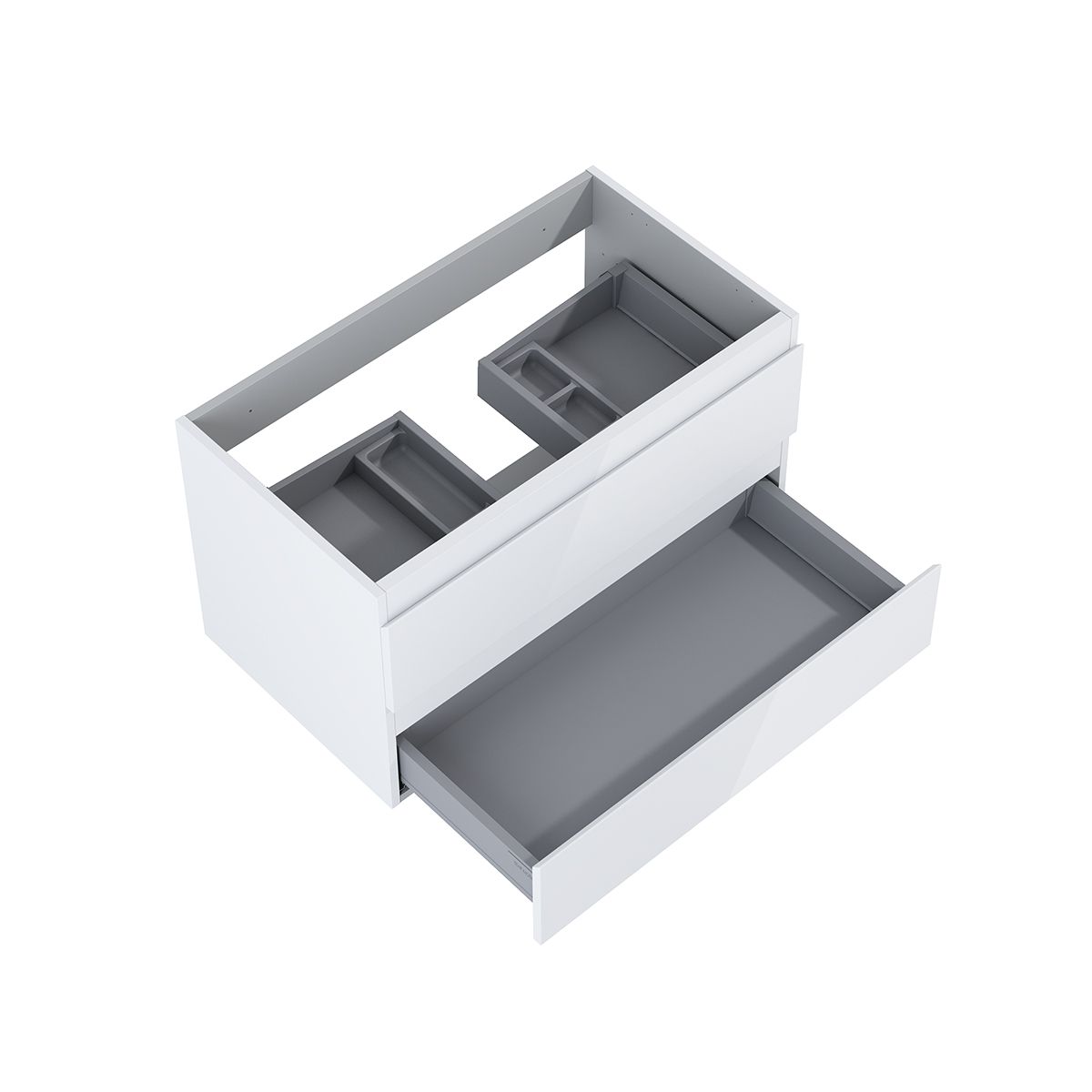 der Schrank ist mit 2 Schubladen mit dem Oltens QuietClose‑System ausgestattet. Sie ermöglichen ein leises und sanftes Schließen von Schubladen Die im Schrank verwendeten Schubladenführungen ermöglichen Vollauszüge, wodurch die Nutzung der Schubladen komfortabler wird Metallschubladen, Organizer in der obersten Schublade. Schrank aus MDF, UV‑beständige Lackbeschichtung.