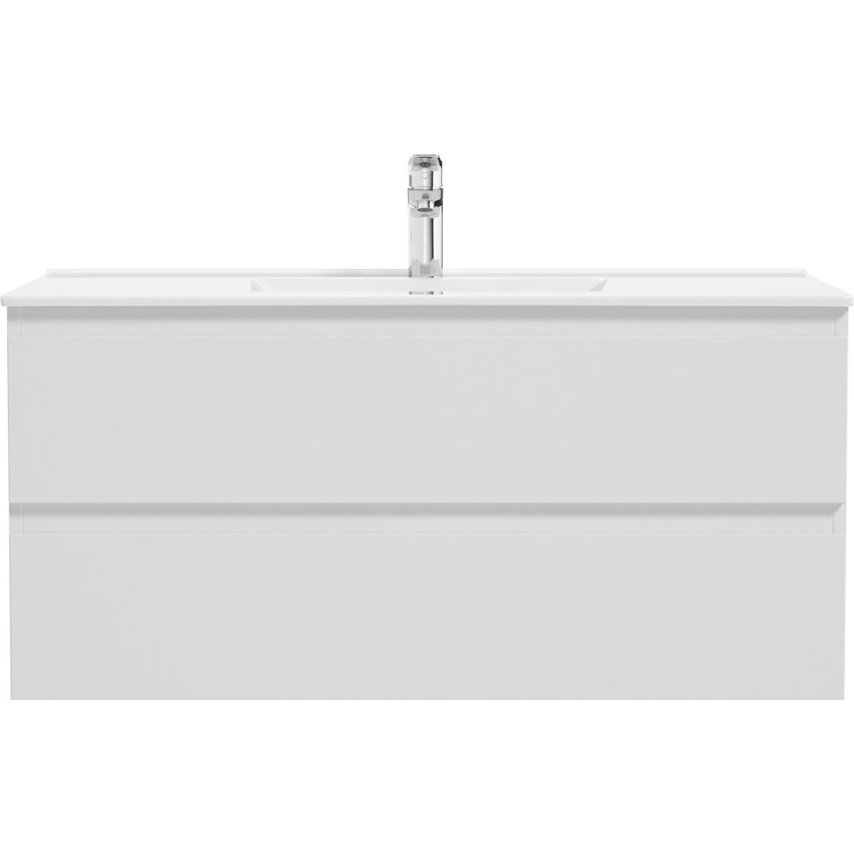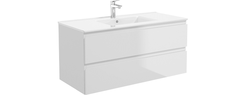 ‑ Breite des Beckens 101 cm ‑ Tiefe des Waschbeckens 46 cm ‑ Höhe des Waschbeckens 17 cm ‑ Loch für Armatur Ø35 mm ‑ Schrankbreite 99,6 cm ‑ Schranktiefe 45,65 cm ‑ Höhe des Schranks 47 cm