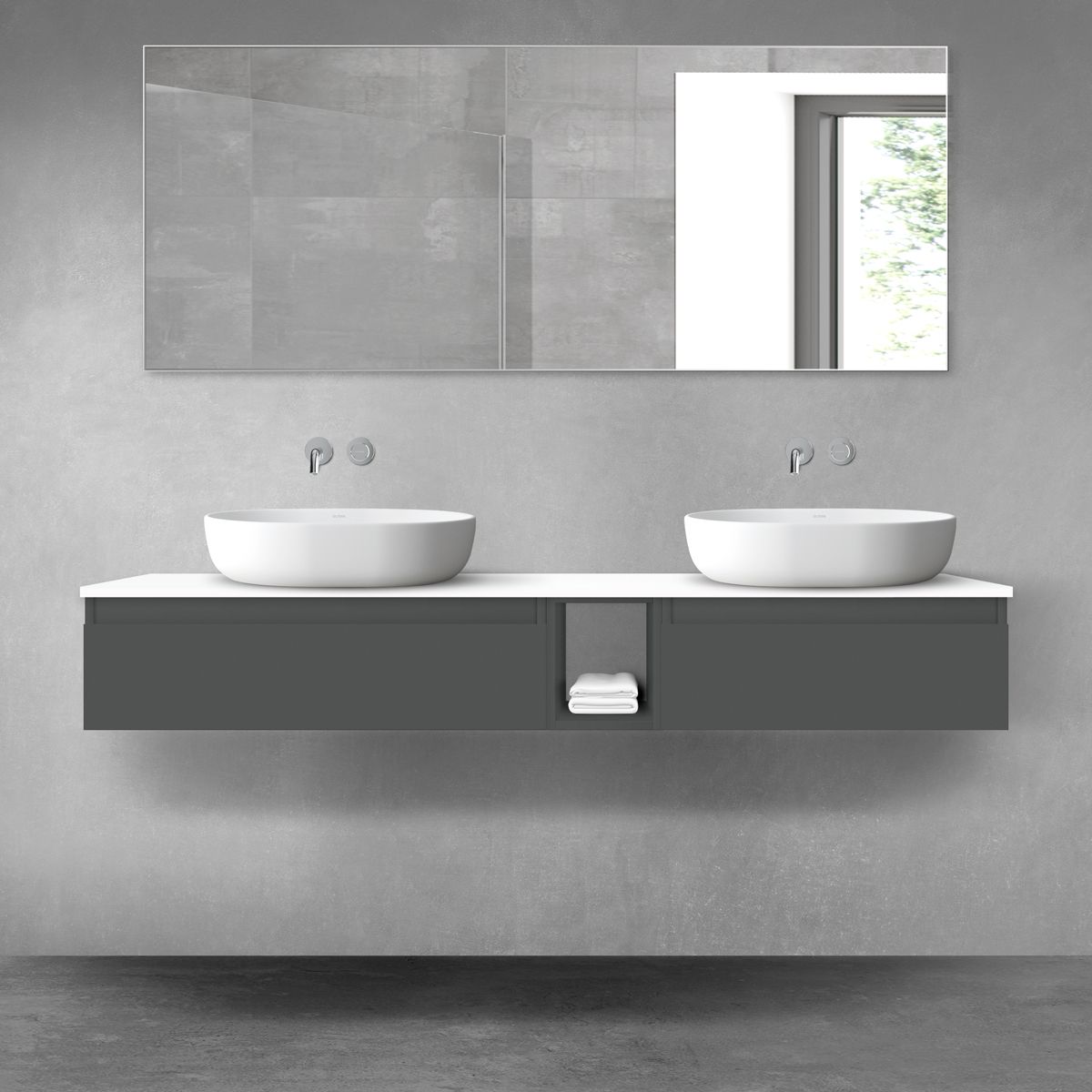 Oltens Vernal Waschtischunterschrank 80 cm, hängend, graphit matt 60010400
