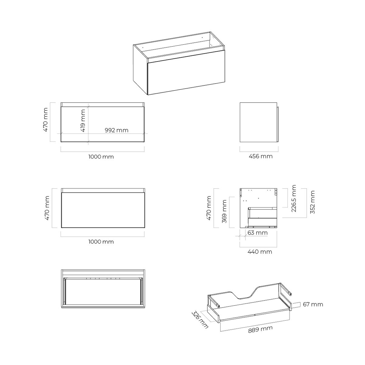 - Hängender Waschtischunterschrank mit 1 Schublade