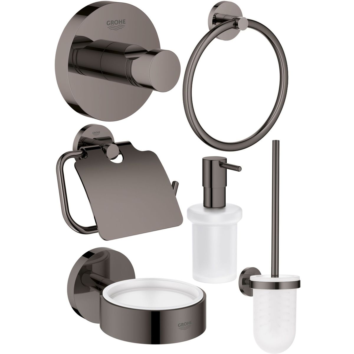 2. Grohe Essentials Toilettenpapierhalter mit Abdeckung, Hard Graphite 40367A01