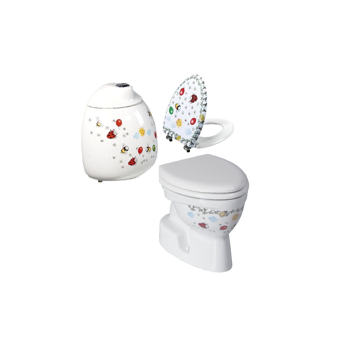 Die Kinderkeramikserie KID eignet sich nicht nur für Krippen und Kindergärten, sondern auch für Standardbäder und überall dort, wo normale Keramik für Kinder zu groß ist. Zur Auswahl stehen weiße Keramik oder fröhliche bunte Aufdrucke, die sicherlich ein Lächeln auf die Gesichter aller kleinen Nutzer zaubern werden