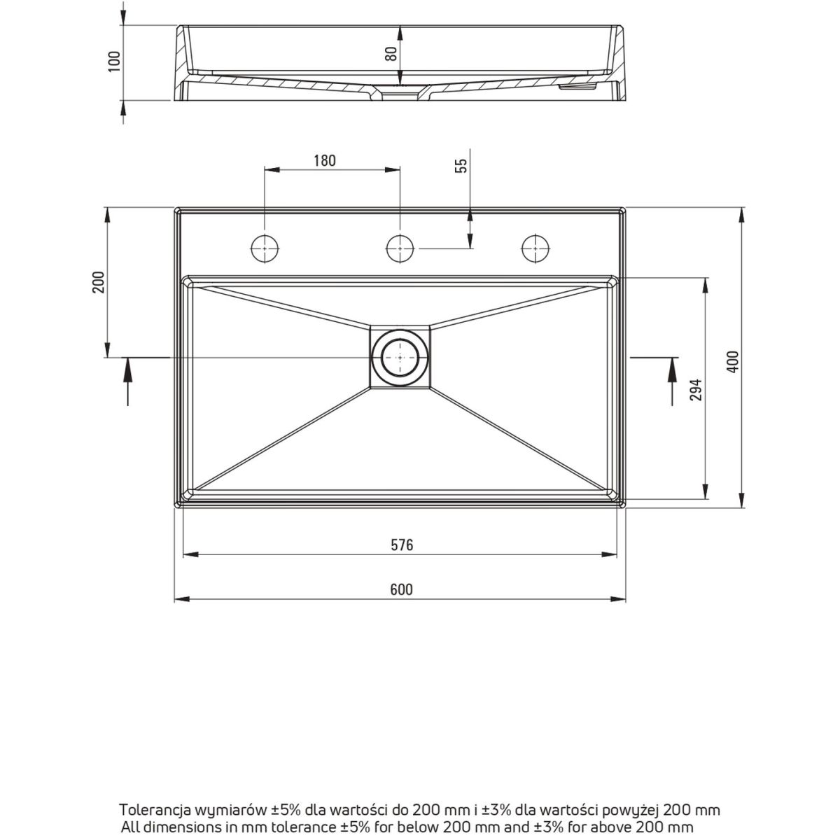 - ohne Armaturenbohrung (3 vorgefräste Löcher)