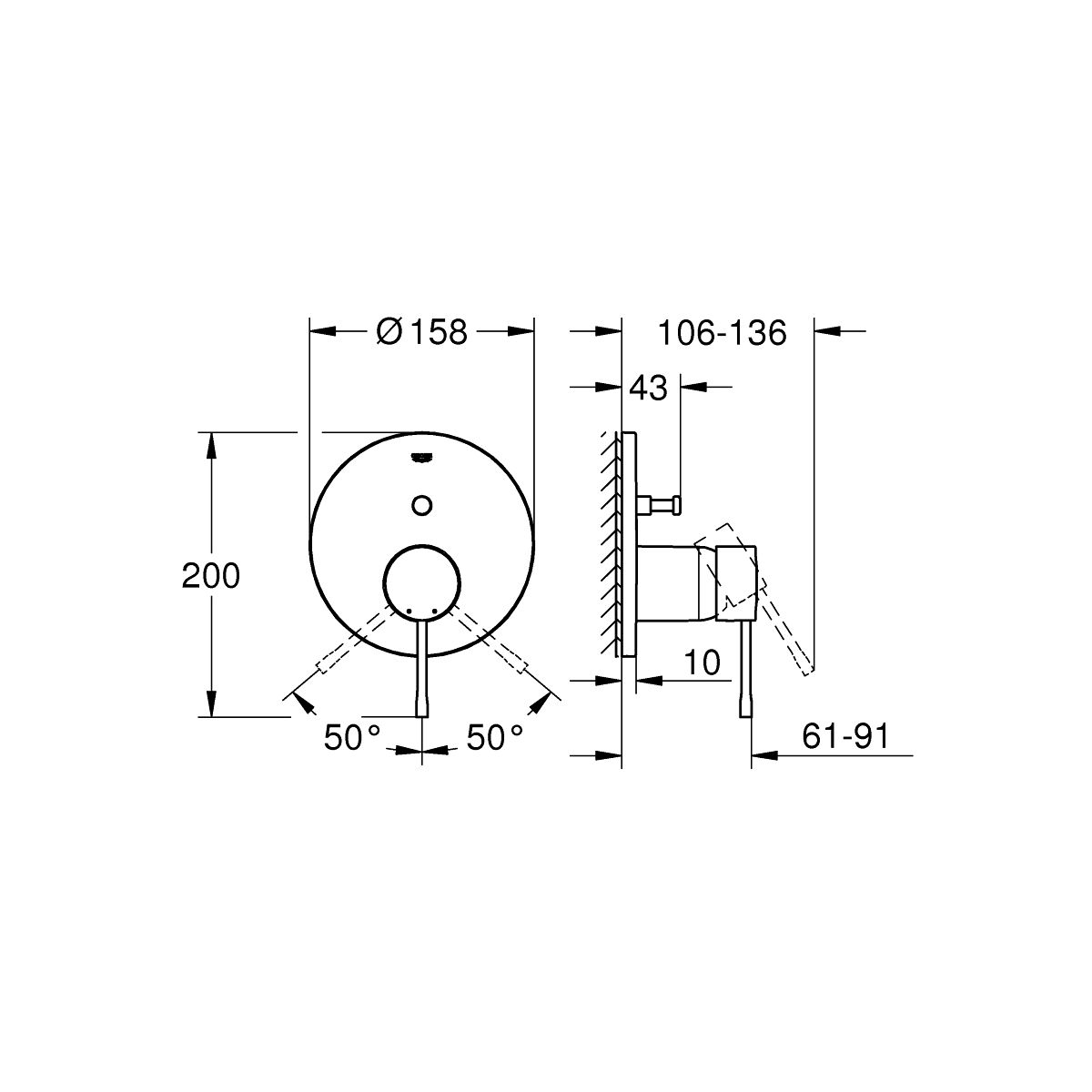 - Grohe FastFixation Wandrosette (mit Dichtung, verdeckte Befestigungen)