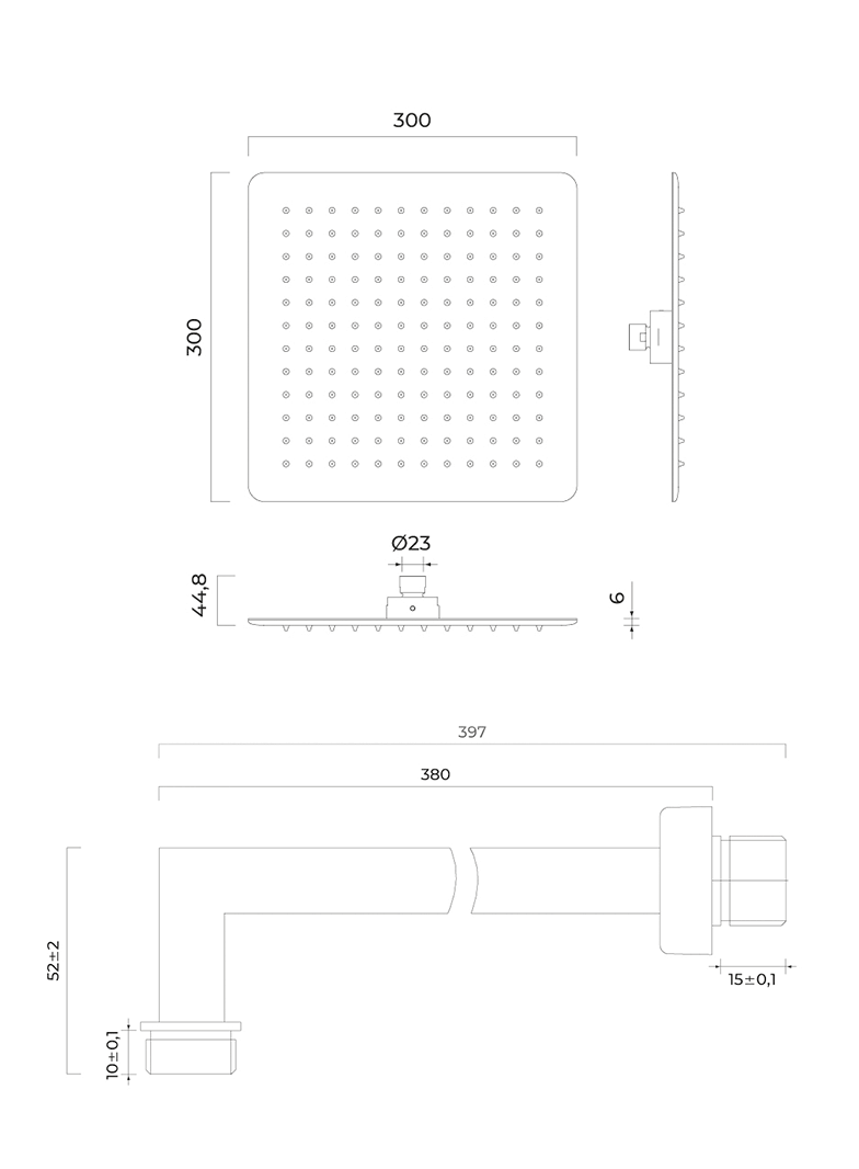 Regenbrause Quadratisch, Abmessungen 300 x 300 mm