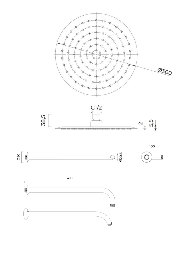 - Regenbrausearm