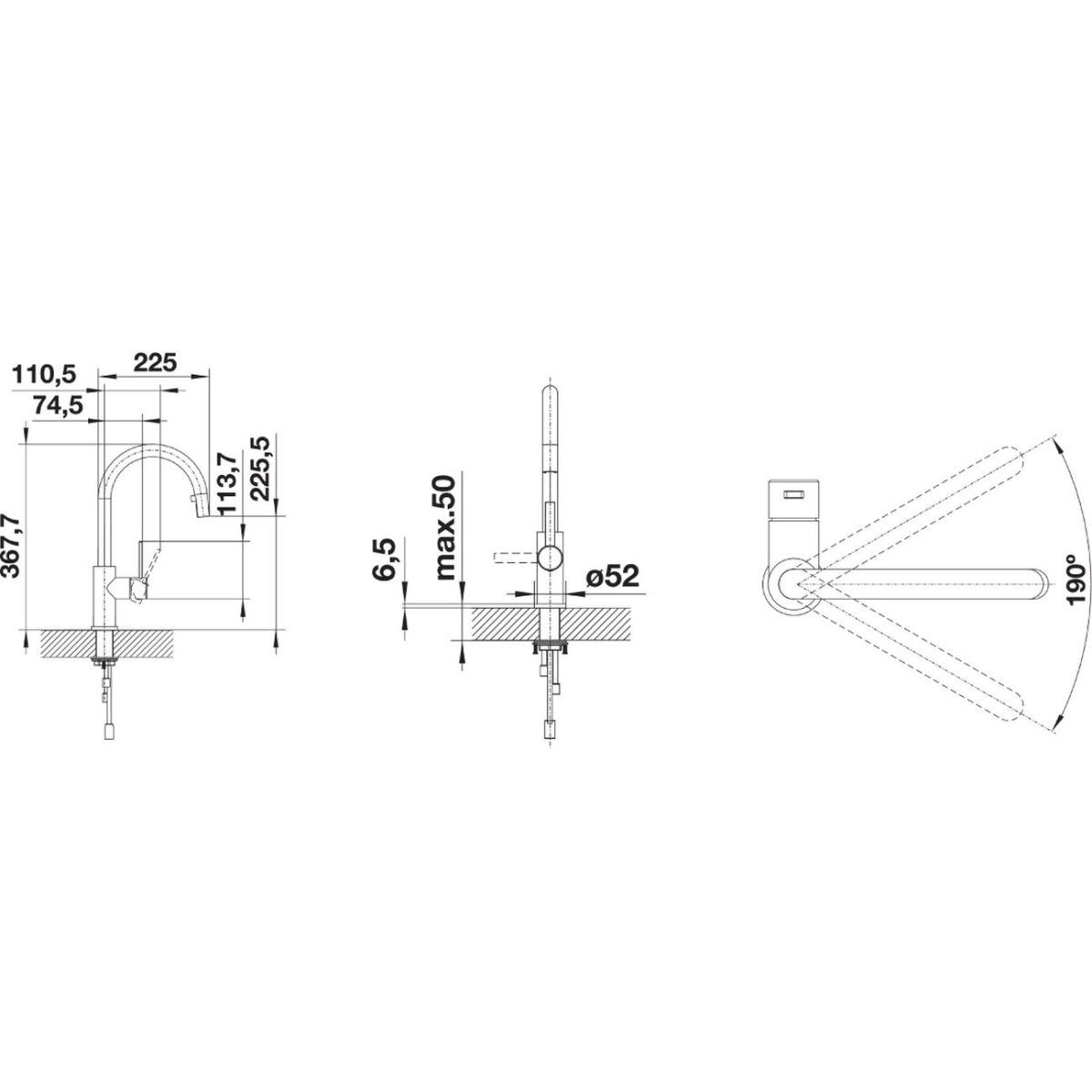 - Schwenkwinkel des Auslaufs 190°