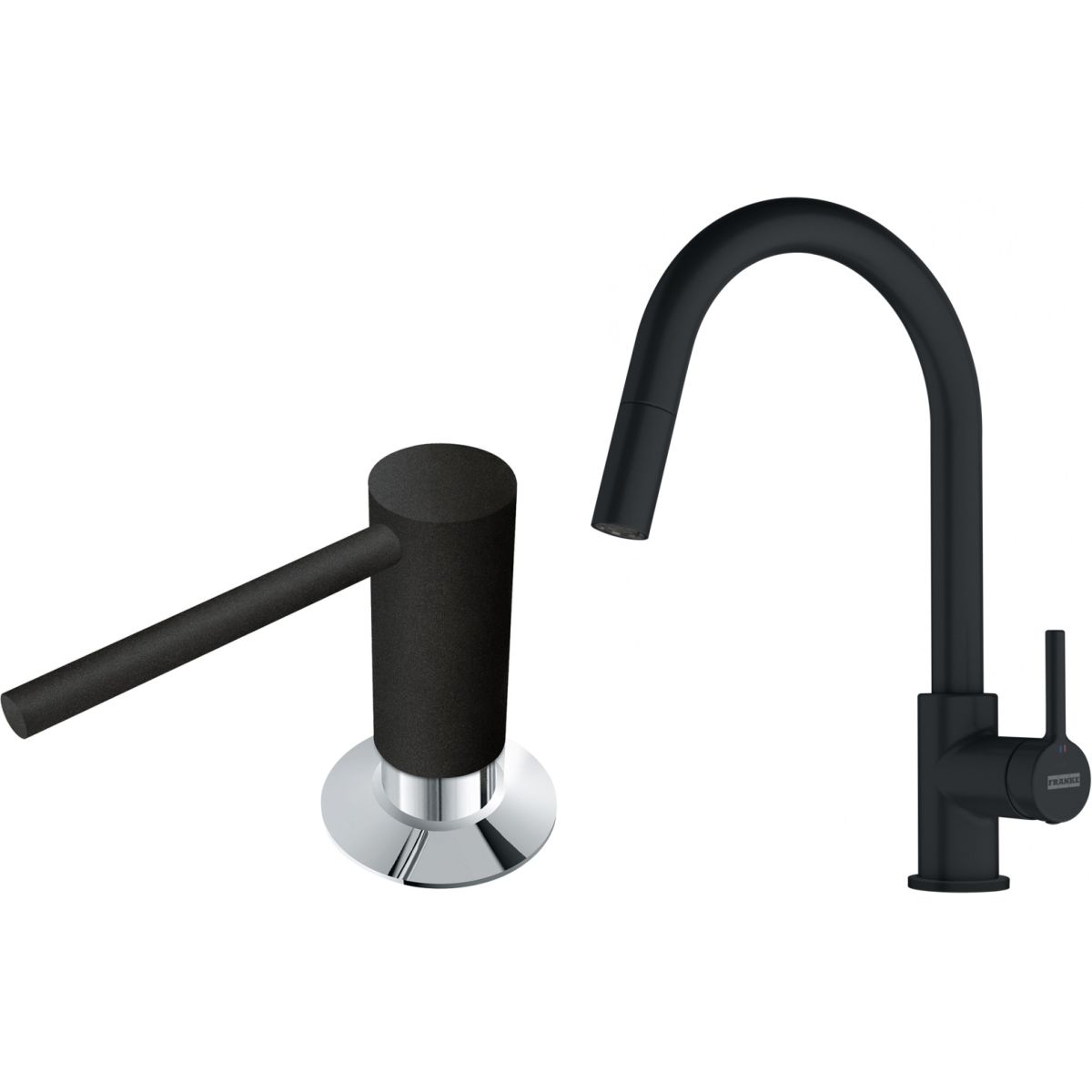 Franke Lina Pull-Out – Küchenarmatur mit ausziehbarem Auslauf in Mattschwarz (Modell 115.0626.053) – ist eine Kombination aus modernem Design und praktischen Lösungen. Ihre stilvolle, mattschwarze Oberfläche verleiht der Küche einen eleganten, ausdrucksstarken Akzent und passt perfekt zu verschiedenen Einrichtungsstilen.