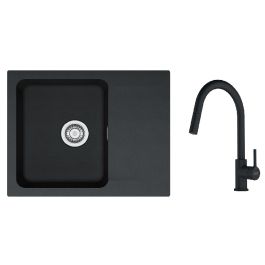 Ein äußerst stilvoller Küchenspülbecken in der Farbe des Edelsteins Onyx. Zu seinen Vorteilen gehören ein automatischer Stöpsel mit Sieb und ein Abtropfgestell, die den Spülbecken zusätzliche Funktionalität verleihen. Das Produkt wurde aus Tectonite hergestellt. Es handelt sich um ein äußerst strapazierfähiges Material, das stoßfest, kratzfest und hitzebeständig ist und gleichzeitig relativ leicht, was die Montage der daraus hergestellten Produkte erleichtert.
