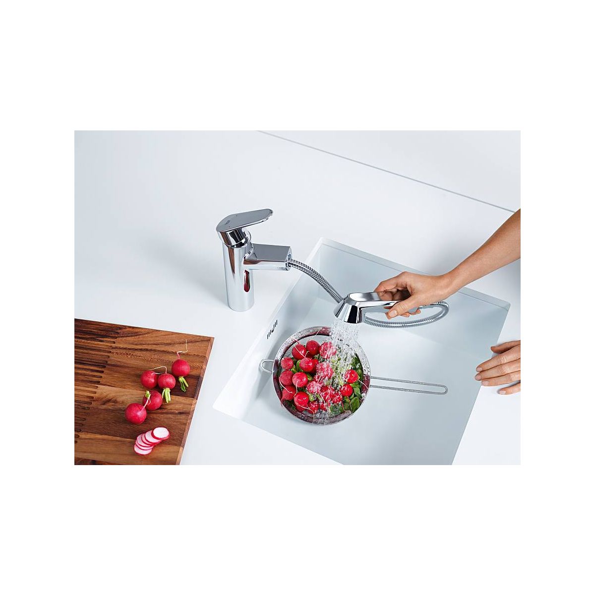 Eurodisc Cosmopolitan ist eine Küchenarmatur, die nicht nur von Kochbegeisterten, sondern auch von Ästheten geschätzt wird. Ihre hohe Funktionalität wird durch die Kombination mit der Spüle Orion unterstrichen.