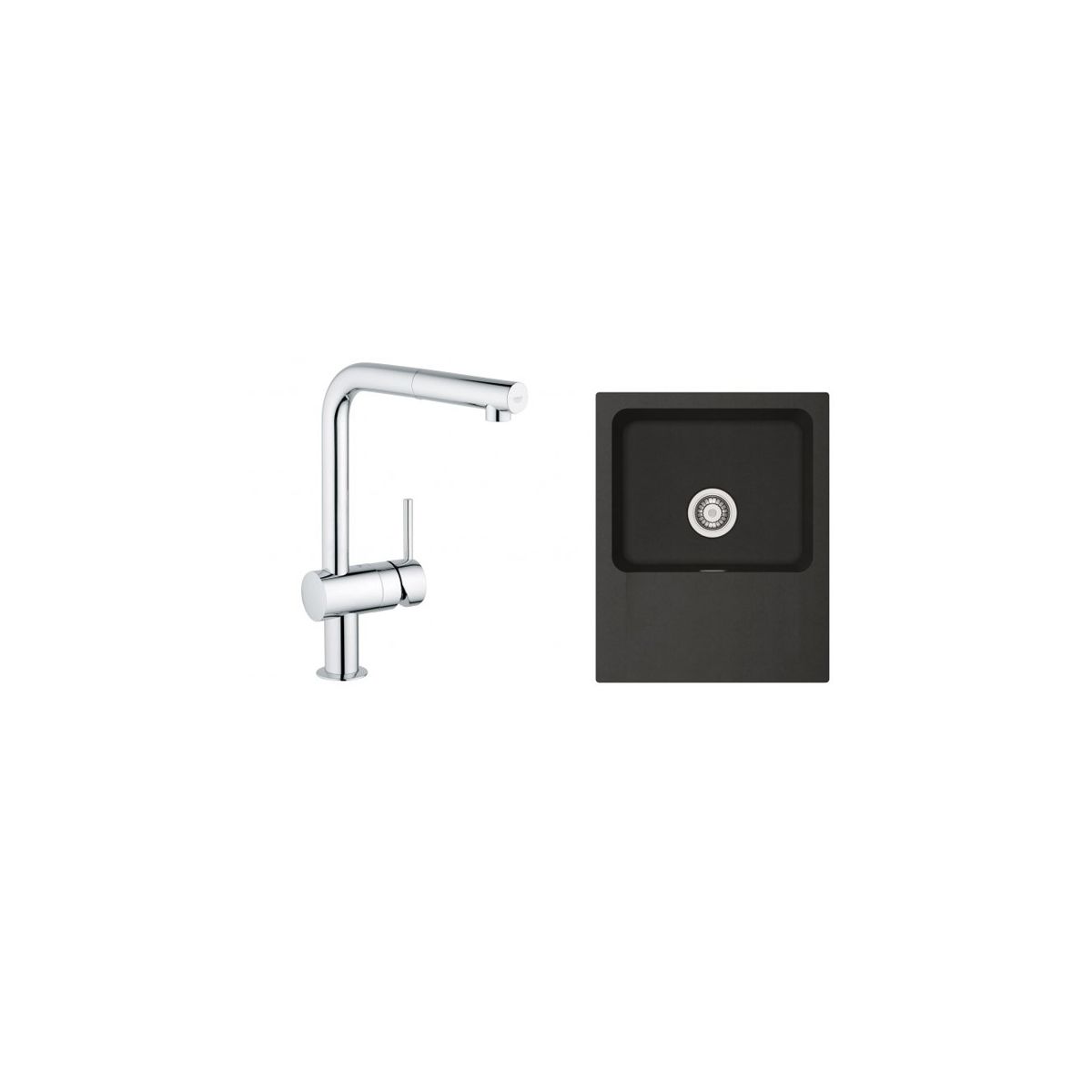 Sorgfältige Verarbeitung, glänzende Oberfläche und schwenkbarer Auslauf mit ausziehbarem Perlator sind die Merkmale der Minta-Armatur, die sie über Jahre hinweg zu einem Blickfang machen. Die dunkle 1-Kammer-Spüle mit kurzem Abtropfbereich sorgt für einen Kontrast zum Set und macht es optisch und funktional äußerst attraktiv.