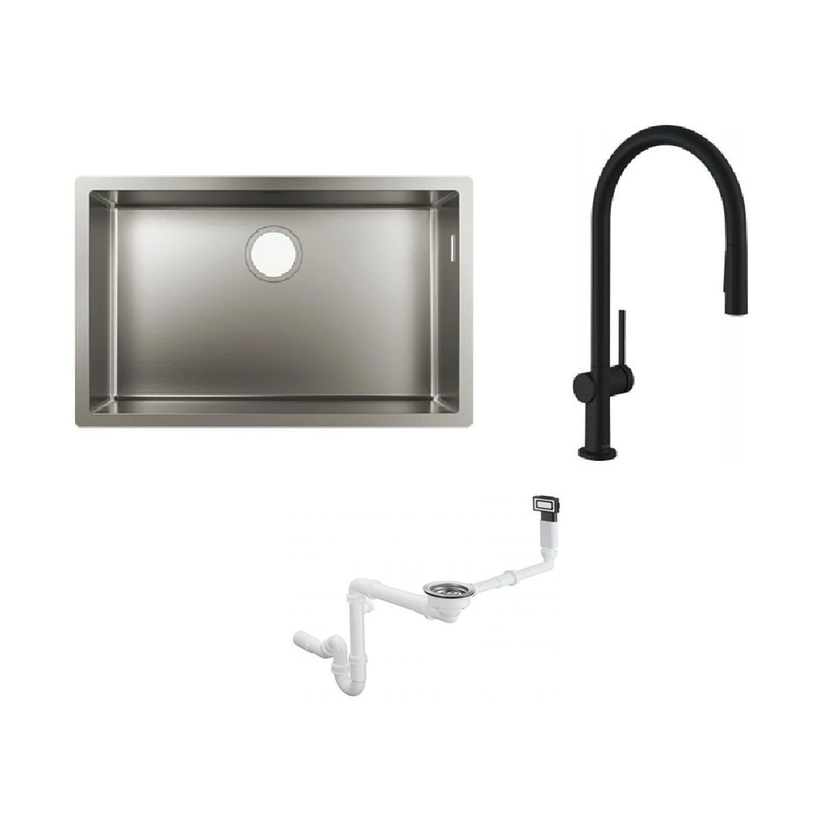 - Kompaktes Design: Das Abflusssystem verfügt über ein platzsparendes Abfluss-Winkelstück. Das bedeutet mehr Platz unter der Spüle.