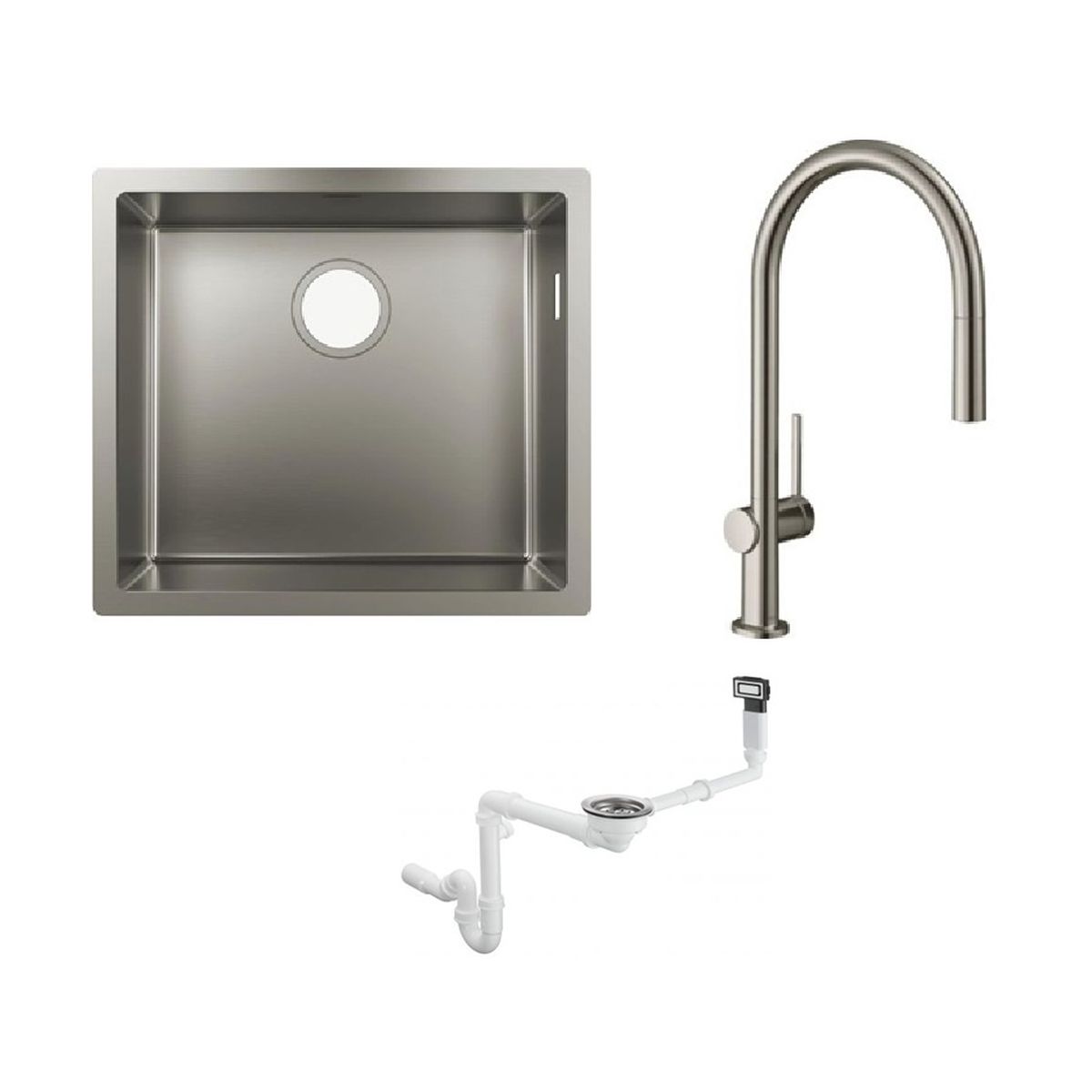 - Kompaktes Design: Das Ablaufsystem verfügt über ein platzsparendes Ablaufknie. Das bedeutet mehr Platz unter der Spüle.