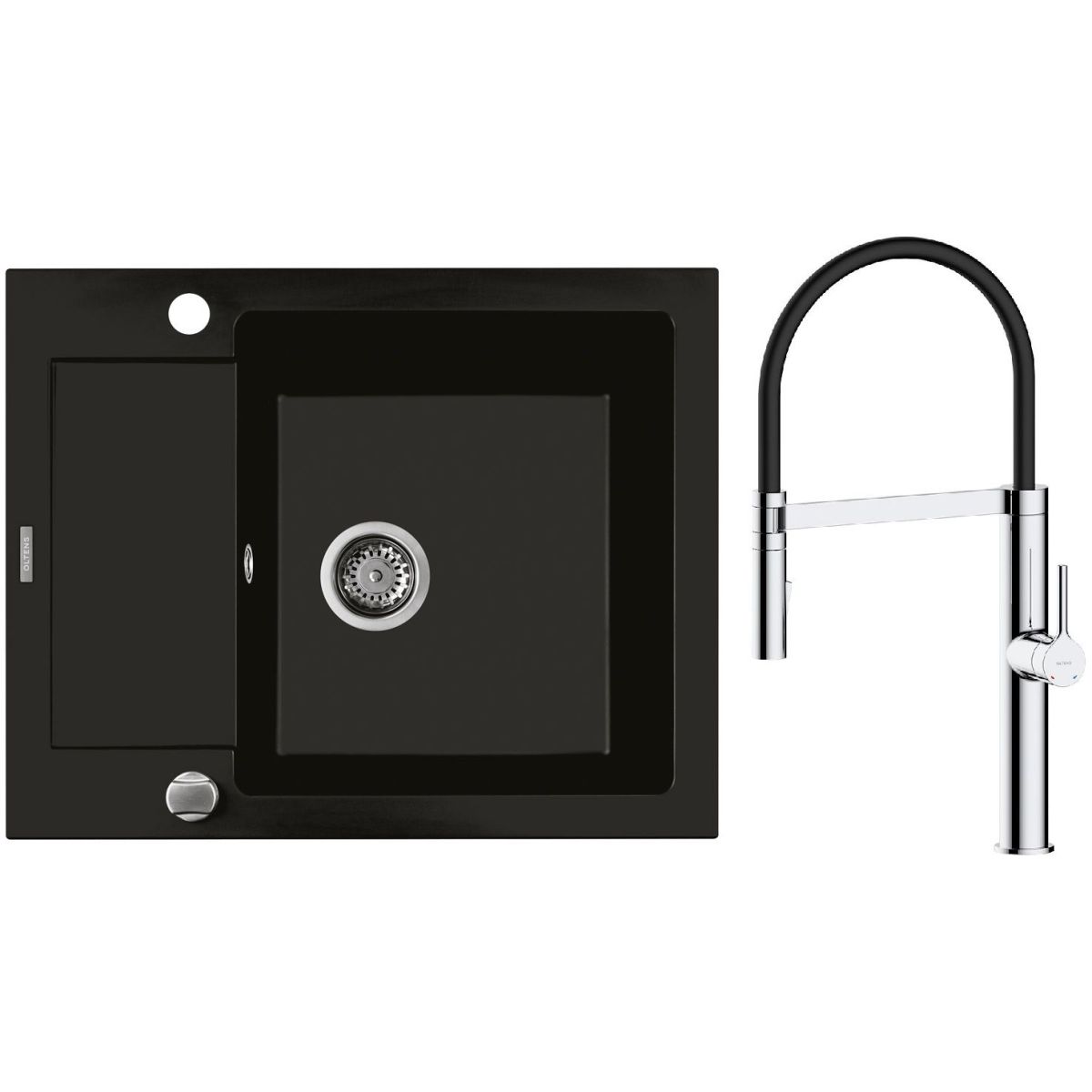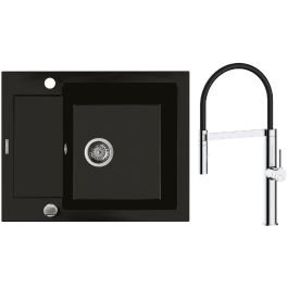 1. Oltens Gravan Granitspüle mit 1 Becken und kurzem Abtropffläche 62x50 cm schwarz matt 72102300