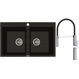 1. Oltens Gravan Granitspüle mit 2 Becken, 78 x 50 cm, schwarz matt, 72400300