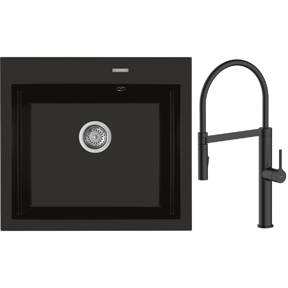 1. Oltens Gravan Granitspüle mit 1 Becken 57 x 51,5 cm schwarz matt 72000300