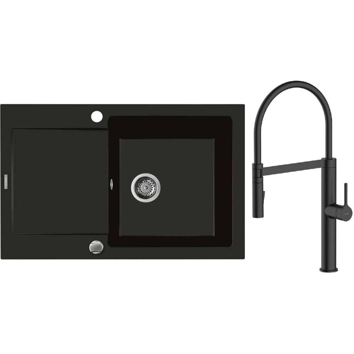 1. Oltens Gravan Granitspüle mit 1 Becken und kurzem Abtropfbereich 79 x 50 cm, mattschwarz 72100300
