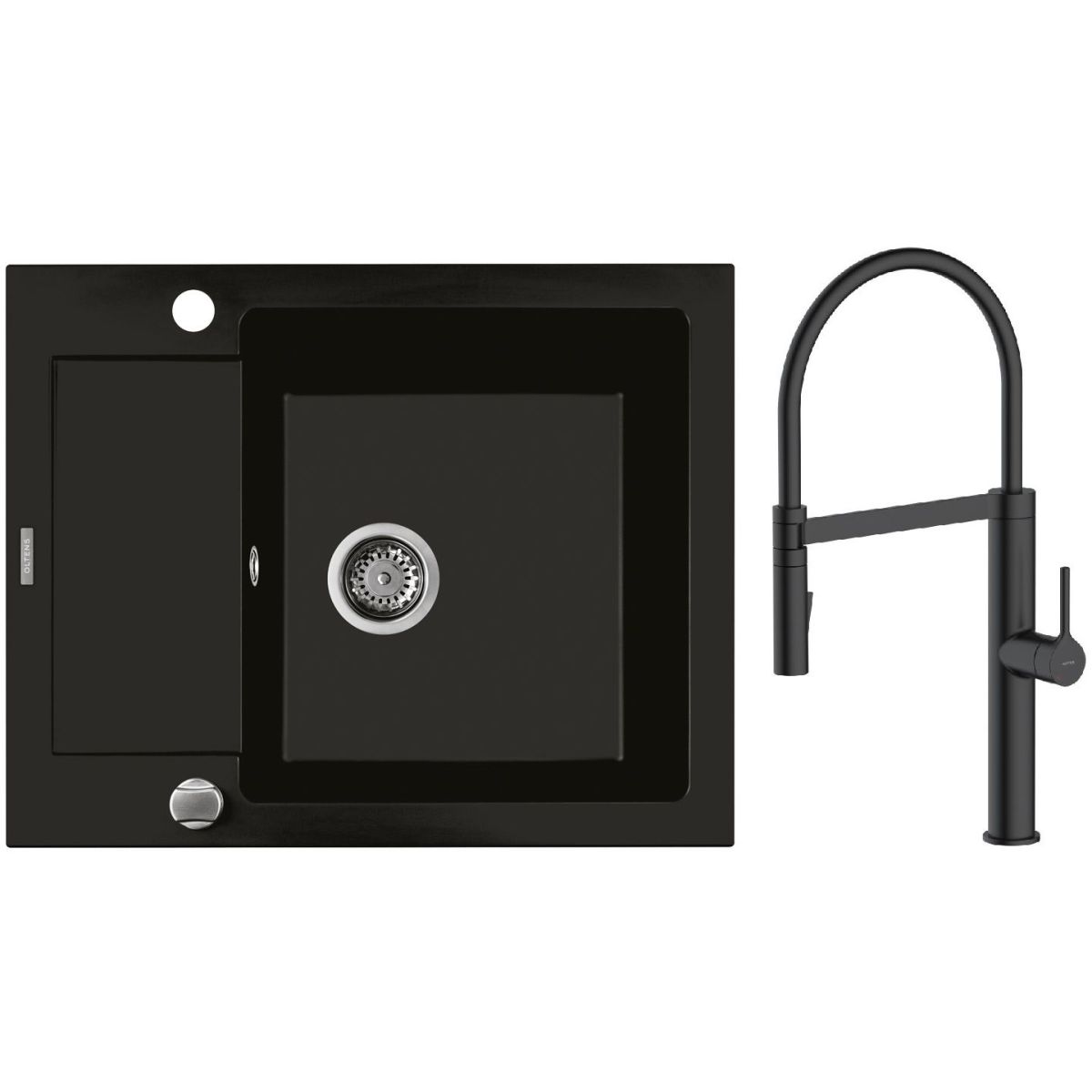 1. Oltens Gravan Granitspüle mit 1 Becken und kurzem Abtropffeld 62 x 50 cm, mattschwarz 72102300