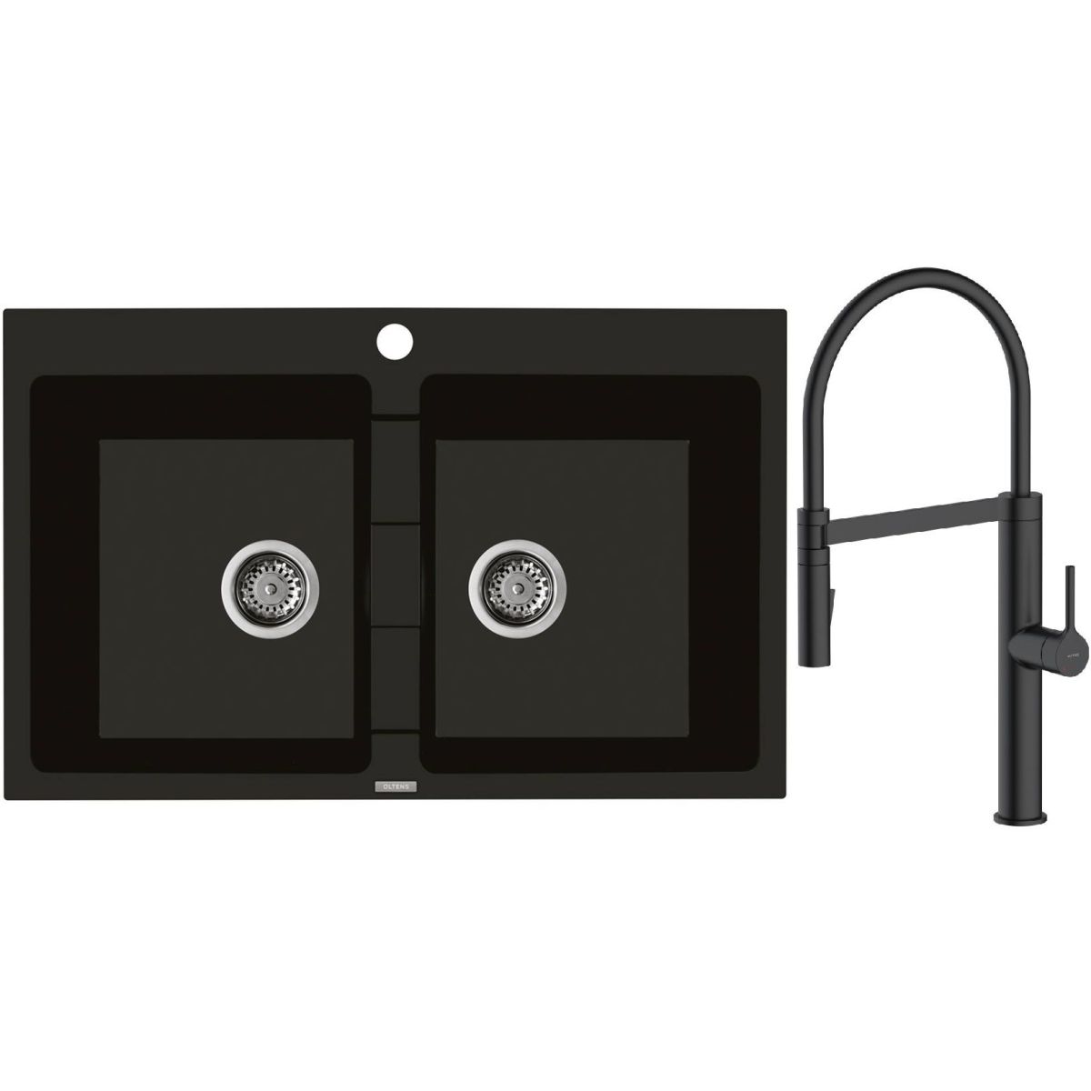 1. Oltens Gravan Granitspüle mit 2 Becken, 78 x 50 cm, schwarz matt, 72400300