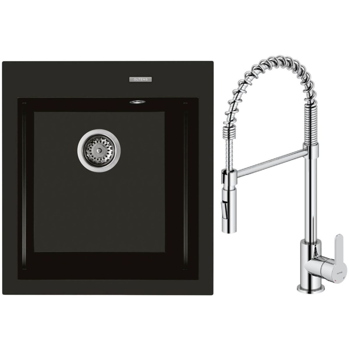 1. Oltens Gravan Granitspüle mit 1 Becken, 47 x 51,5 cm, mattschwarz 72001300