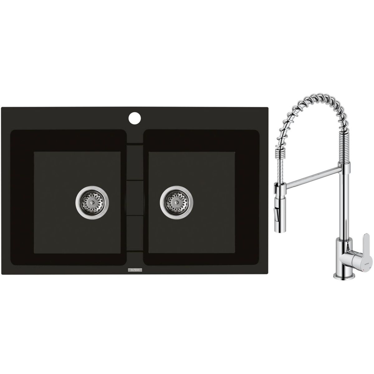 1. Oltens Gravan Granitspüle mit 2 Becken, 78 x 50 cm, mattschwarz, 72400300