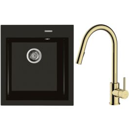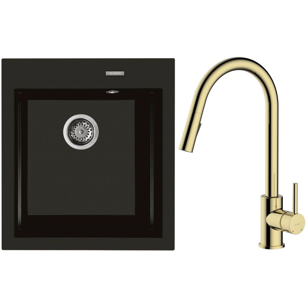 1. Oltens Gravan Granitspüle mit 1 Becken, 47 x 51,5 cm, mattschwarz 72001300