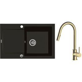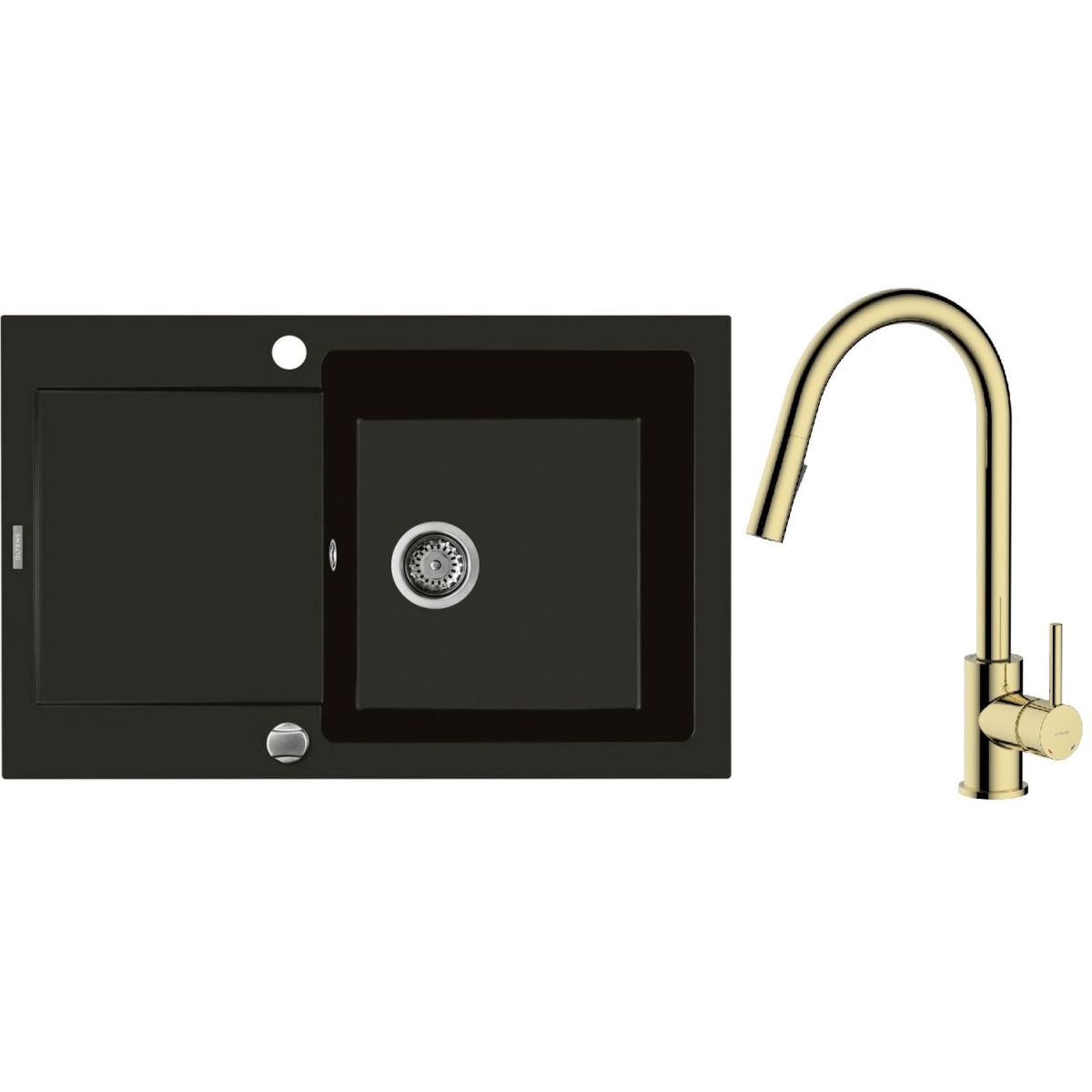 1. Oltens Gravan Granitspüle mit 1 Becken und kurzem Abtropffeld 79 x 50 cm, schwarz matt 72100300