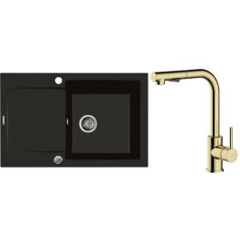 1. Oltens Gravan Granitspüle mit 1 Becken und kurzem Abtropffeld 79 x 50 cm, mattschwarz 72100300