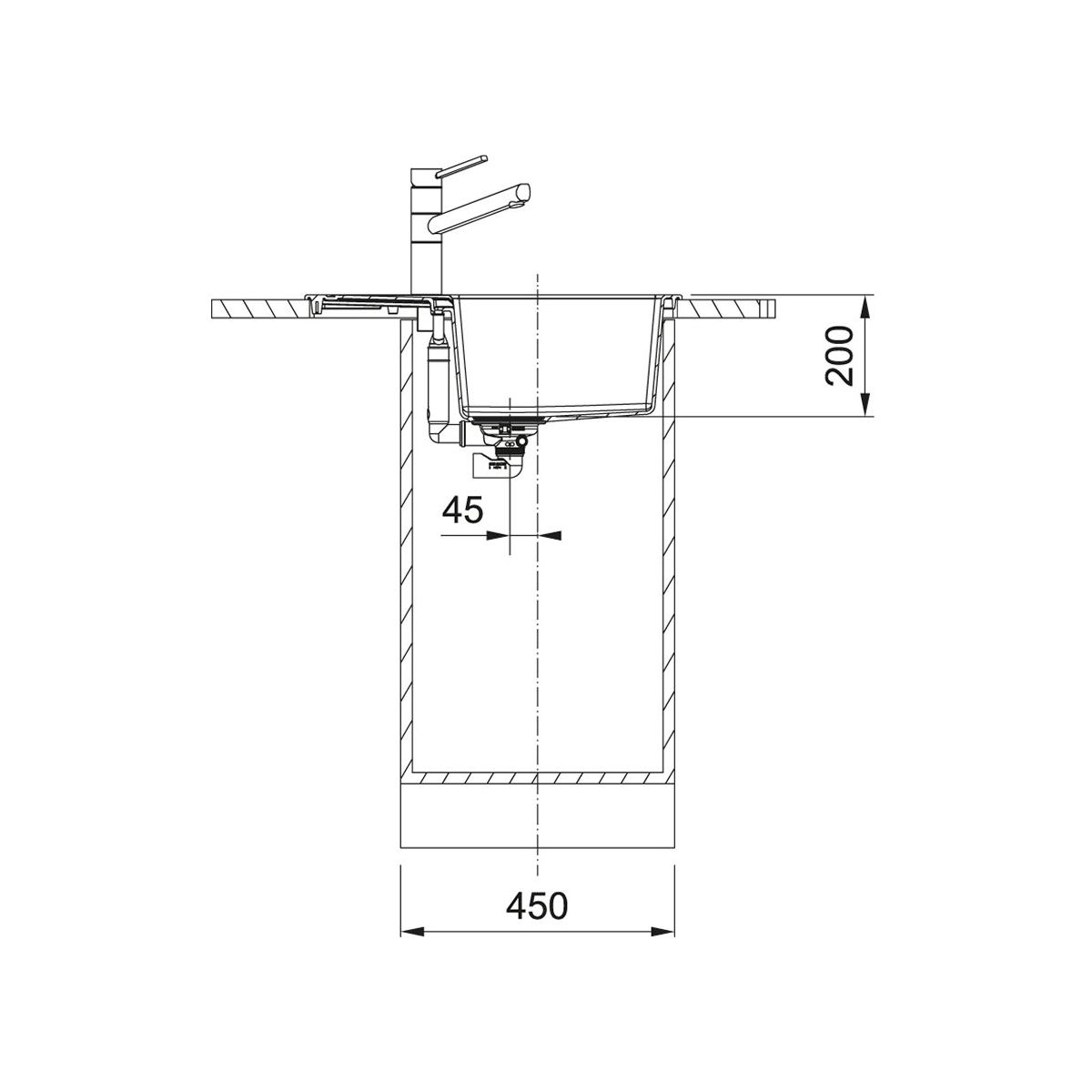 - Mindestbreite des Unterbaus: 45 cm