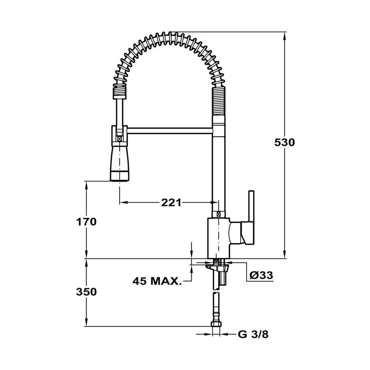 - beweglicher, flexibler Auslauf, um 360º drehbar