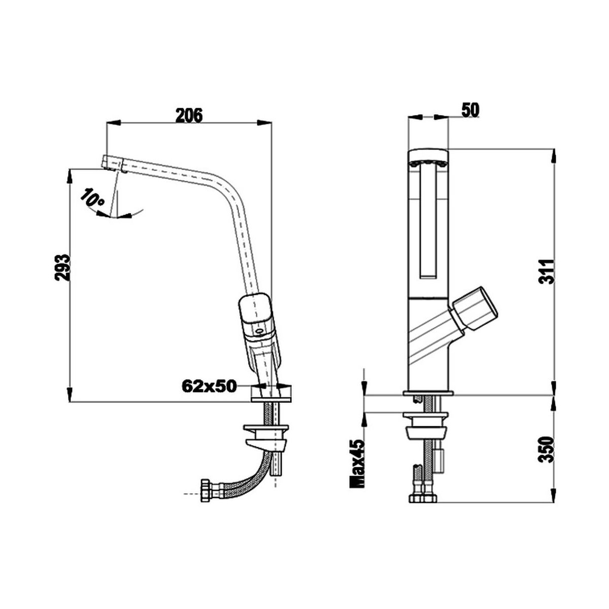 - flexible Schläuche 3/8 ”- 1/2”