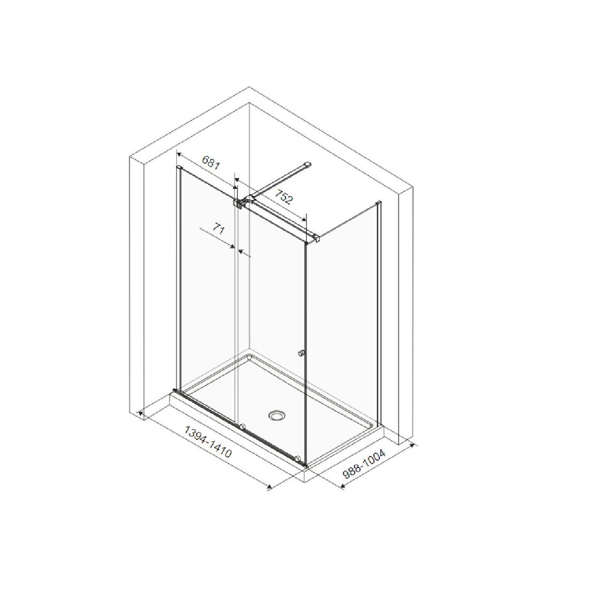 - Halterung zur Befestigung der festen Wand und zur Stabilisierung der Schiebetür, mit einem aufklappbaren Haken, an dem ein Handtuch oder Bademantel aufgehängt werden kann