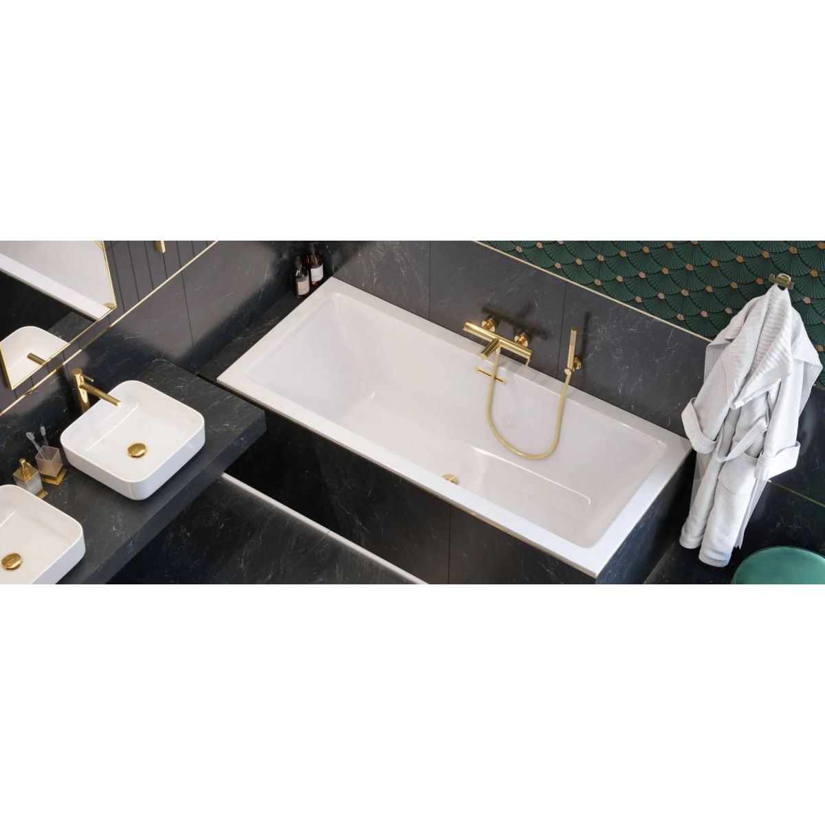 Set Rechteckige Badewanne Excellent Heaven Slim WAEX.HEV17WHS, Badewannensiphon Excellent Flow ARIN.FLOW.GL