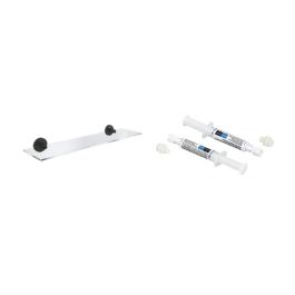 - Die Packung enthält zwei Spritzen mit Klebstoff und zwei Adapter für die Montageplatte an der Wand.