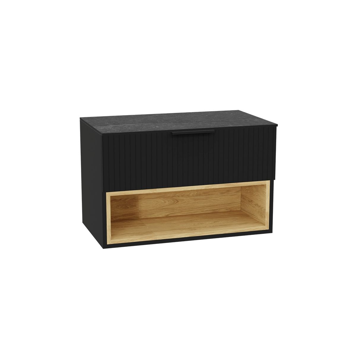 Tuto 2.0 Schrankkorpus 80 cm, 1 Schublade, schwarz matt/Eiche.