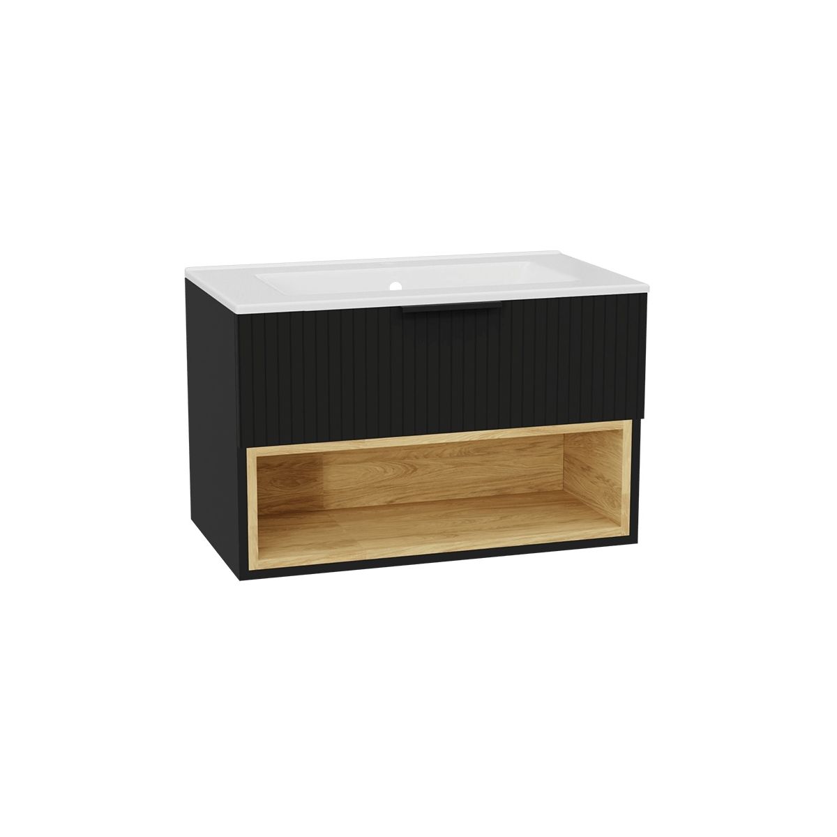 Tuto 2.0 Schrankkorpus 80 cm, 1 Schublade, schwarz matt/Eiche.